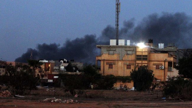 Ο στρατηγός Σαγρ αλ-Τζερούσι, επικεφαλής των αεροπορικών δυνάμεων πιστών στον στρατηγό Χάφταρ, δήλωσε ότι «μαχητικά αεροσκάφη και ελικόπτερα πραγματοποίησαν επιδρομές» εναντίον των μαχητών ισλαμιστών που προωθούνταν στο αεροδρόμιο.
