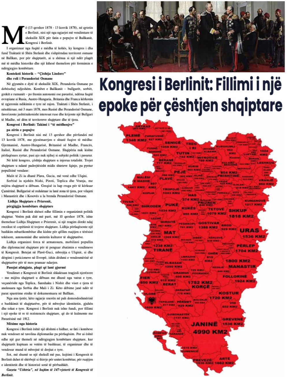 Συγκεκριμένα, με αφορμή τα 147 χρόνια από το Συνέδριο του Βερολίνου, παρουσιάζεται άρθρο στο επίσημο περιοδικό του Υπουργείου Άμυνας, το «Gazeta Ushtria»
