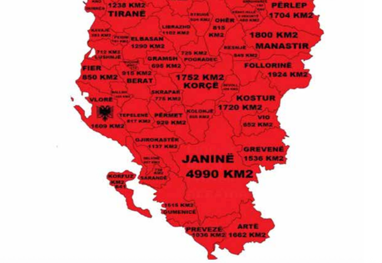 Το άρθρο αυτό συνοδεύεται από χάρτη που παρουσιάζει ελληνικά εδάφη ως «ιστορικές αλβανικές περιοχές», με αναγραφή ονομάτων και εκτάσεων σε τετραγωνικά χιλιόμετρα.