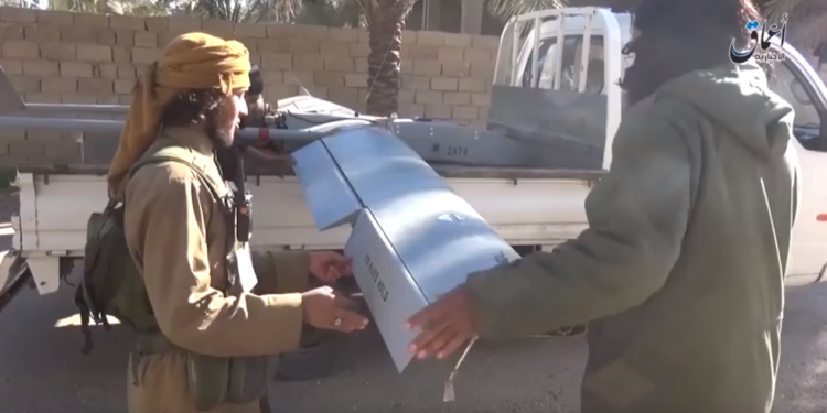 Βίντεο που έκανε την εμφάνισή του στο διαδίκτυο από λογαριασμούς του ISIS δείχνει αμερικανικό drone στα χέρια τζιχαντιστών οι οποίοι το περιεργάζονται.