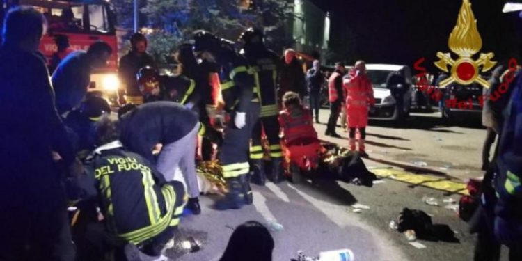Δεκάδες τραυματίες και έξι νεκροί. Αυτός είναι ο απολογισμός από την χθεσινή νύκτα κατά την εκδήλωση πανικού μεταξύ του πλήθους που παρακολουθούσε συναυλία σε ντισκοτέκ στην πόλη Κορινάλντο, κοντά στην Ανκόνα στην Ιταλία, όπως ανακοίνωσε το πυροσβεστικό σώμα.