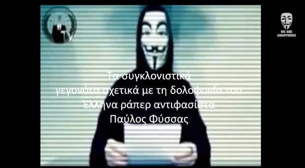 Οι Anonymous στέλνουν μήνυμα στην Ελλάδα . Και ειδικότερα στους Χρυσαυγίτες. Στο βίντεο που έφτιαξαν περιλαμβάνουν όλα όσα η Χρυσή Αυγή διέπραξε τα τελευταία χρόνια στην χώρα . Και λένε τις αλήθειες τις οποίες εδώ στην Ελλάδα όπως φάνηκε αργήσαμε να τις πούμε φωναχτά αν και τις βλέπαμε να διαδραμτίζονται δίπλα μας.