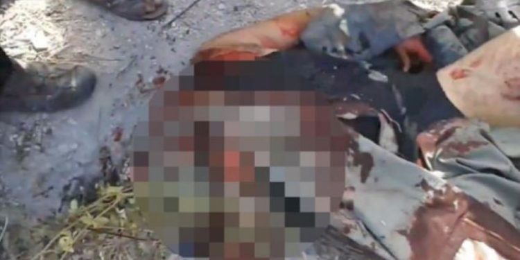 Οι τρομακτικές σκηνές που κυκλοφορούν στο διαδίκτυο εδω και κάποιες ωρες δείχνουν το ακέφαλο πτώμα ενος άντρα ντυμένου με στρατιωτική στολή λιγες ώρες αφου συνετρίβη το ελικόπτερο.