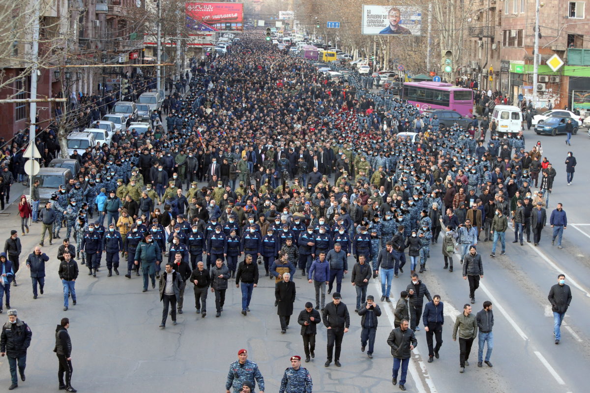 Η αντιπολίτευση ζητά την παραίτηση του Πασινιάν, τον οποίο χαρακτηρίζει «προδότη» επειδή τον Νοέμβριο αποδέχτηκε την ειρηνευτική συμφωνία με το Αζερμπαϊτζάν για τον τερματισμό του πολέμου στο Ναγκόρνο Καραμπάχ.