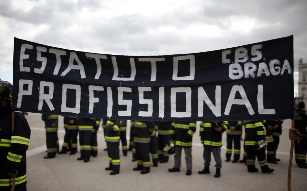 Η φωτογραφία είναι από πρόσφατη διαδήλωση πυροσβεστών στην Πορτογαλία. Στρατιωτικοί και προσωπικό των σωμάτων ασφαλείας είναι εξαιρετικά δραστήριοι από την αρχή της οικονομικής κρίσης στην Πορτογαλία.