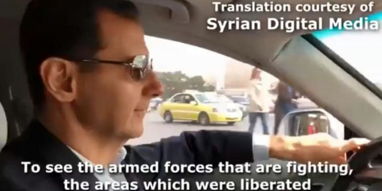 «Ο δρόμος είναι ανοιχτός…όλα λειτουργούν πλέον στην πόλη και στη Συρία». Σε μια επίδειξη νίκης, με φόντο ερείπια, κτίρια με τρύπες από όλμους, περνώντας πλάι από αμάχους που αποχωρούσαν από τον ανταρτοκρατούμενο θύλακα, ο Σύρος πρόεδρος λέει στο ερασιτεχνικό βίντεο, με κάμερα μέσα στο αυτοκίνητο, ότι είναι πλέον πιο εύκολο να ταξιδεύεις σε ολόκληρη τη χώρα. Ο Άσαντ ακόμη… περιγράφει το δρόμο που μέχρι πρόσφατα ήταν κλειστός από πυρά ελεύθερων σκοπευτών.