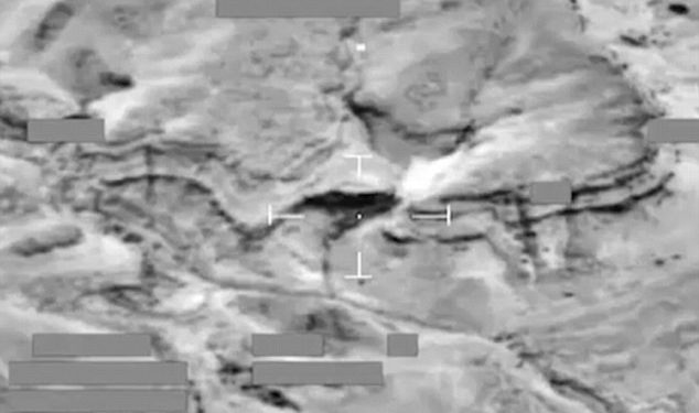 Εναέρια πλάνα δείχνουν τις βόμβες Enhanced Paveway III να χτυπάνε τις εισόδους σε ένα εκτεταμένο υπόγειο συγκρότημα βαθιά στις πλαγιές πάνω από τον Ευφράτη στο δυτικό Ιράκ.