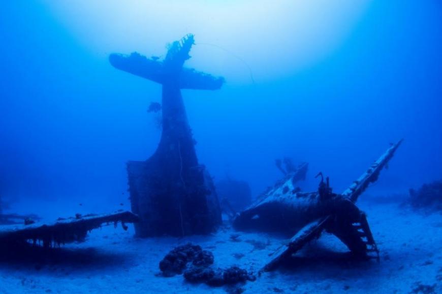 Τα τροπικά νερά στην ατόλλη Kwajalein των Νησιών Μάρσαλ κρύβουν περισσότερα από 150 αμερικανικά αεροσκάφη του Β’ Παγκοσμίου Πολέμου, απομεινάρια των σκληρών μαχών που έδωσαν οι αμερικανικές δυνάμεις κατά των Ιαπώνων στον Ειρηνικό. Ο βυθός θυμίζει… υποθαλάσσιο αεροδρόμιο αλλά για τους ντόπιους στο Ρόϊ Ναμούρ το μέρος είναι γνωστό απλώς ως “το νεκροταφείο των αεροπλάνων”.