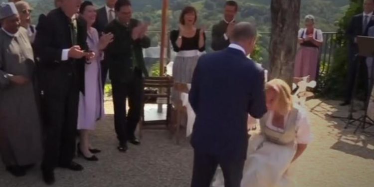 Σε ένα βίντεο που δόθηκε στη δημοσιότητα το οποίο έγινε viraL, η επικεφαλής της αυστριακής διπλωματίας, η χώρα της οποίας ασκεί την προεδρία της ΕΕ για το τρέχον εξάμηνο, κάνει αυτήν την κίνηση σεβασμού προς τον Ρώσο ηγέτη, αφού προηγουμένως χόρεψε μαζί του.