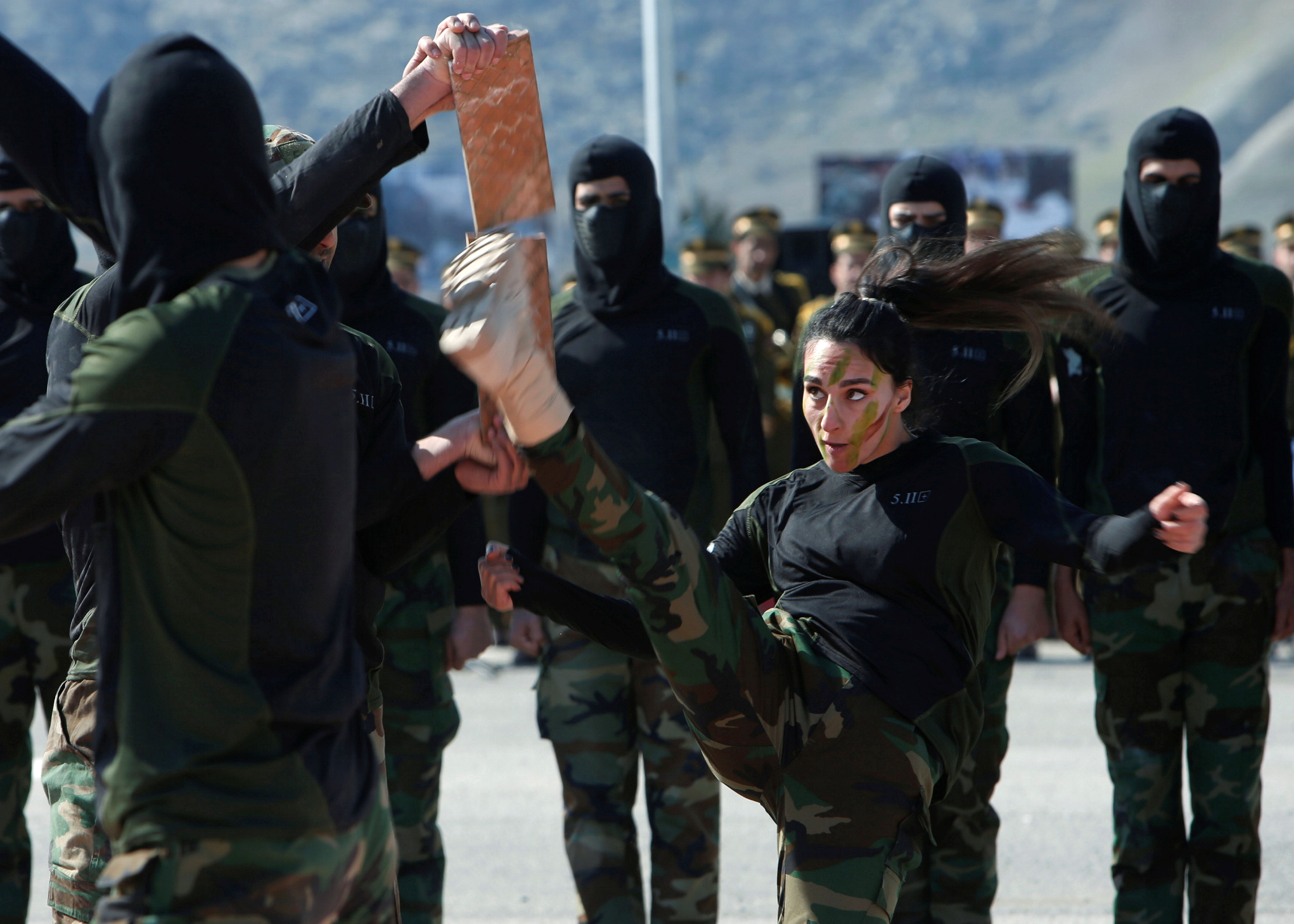 «Πεσμεργκά» σημαίνει «αυτοί που αντιμετωπίζουν τον θάνατο» και η σκληρή εκπαίδευση των επίλεκτων αυτών στρατιωτών φάνηκε στην τελετή «αποφοίτησής» τους. Εκεί, άνδρες και γυναίκες από το Κουρδιστάν έδειξαν ότι δεν «μασάνε», αφού κλήθηκαν να δαγκώσουν από κουνέλια μέχρι… φίδια.