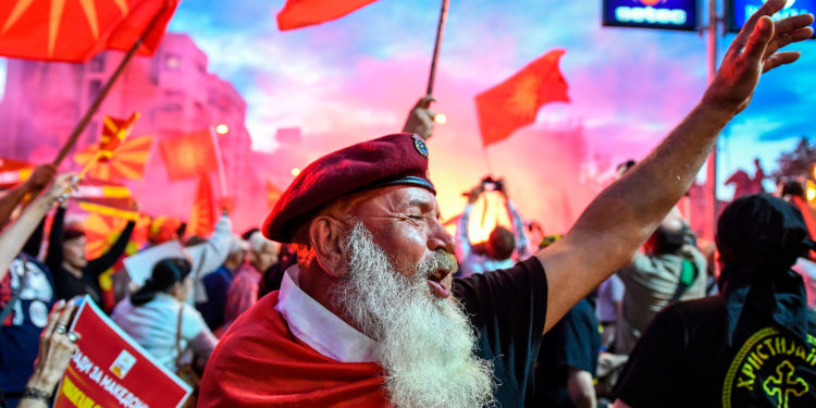 «Υπήρξε εσωτερική αντιπαράθεση για τη συμφωνία που θα τερματίσει τη διαφωνία ονόματος τόσο στη Δημοκρατία της Μακεδονίας όσο και στην Ελλάδα, με φατρίες και στις δύο χώρες που ισχυριζόνται ότι αποδίδονται πάρα πολλά. Δεκάδες χιλιάδες διαδήλωσαν στους δρόμους στη βόρεια ελληνική πόλη της Θεσσαλονίκης τον Ιούνιο και μια μικρή ομάδα διαδηλωτών συγκρούστηκε με την αστυνομία αυτό το μήνα.