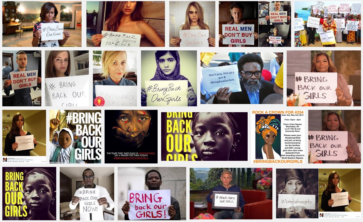 Η αποτρόπαια αυτή πράξη είχε προκαλέσει την ευαισθητοποίηση πολιτών από όλο τον κόσμο οι οποίοι κρατώντας το hashtag #Bringbackourgirls δημοσίευαν τη φωτογραφία τους στα κοινωνικά δίκτυα, πιέζοντας να ληφθούν μέτρα.Εκατομμύρια φωτογραφίες άσημων και διάσημων αναρτήθηκαν στο διαδύκτιο. Δείτε τις ποιο ενδεικτικές: