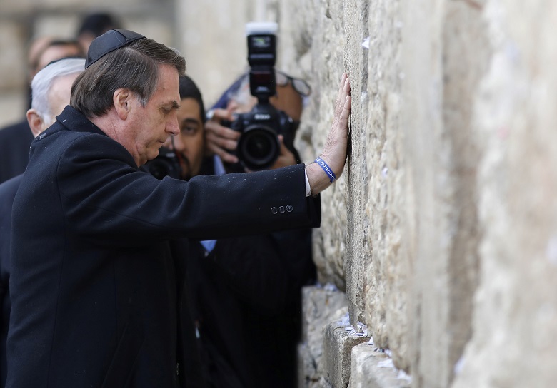 Σπάζοντας τη μακρά διπλωματική παράδοση, ο Μπολσονάρου μετέβη στον ιερότερο τόπο του ιουδαϊσμού, στην Παλιά Πόλη της Ιερουσαλήμ. Φορώντας κιπά στο κεφάλι, ακούμπησε με τα δύο χέρια στις αρχαίες πέτρες και, ακολουθώντας το παράδειγμα του Νετανιάχου που στεκόταν στα αριστερά του, προσευχήθηκε για μερικά δευτερόλεπτα, με το κεφάλι σκυμμένο.