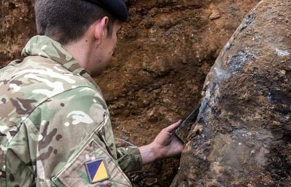 «Πρόκειται για μια γερμανική βόμβα από τον Β’ Παγκόσμιο Πόλεμο», επιβεβαίωσε μια εκπρόσωπος του βρετανικού υπουργείου Άμυνας, ενώ πρόσθεσε ότι πυροτεχνουργοί αναμένεται να συνεχίσουν να εργάζονται στο σημείο και αύριο Τρίτη. «Υπάρχουν πολλά προβλήματα. Πρέπει να την ξεθάψουμε (…) και βρίσκεται σε ένα πολύ ευαίσθητο σημείο», εξήγησε η εκπρόσωπος του υπουργείου.