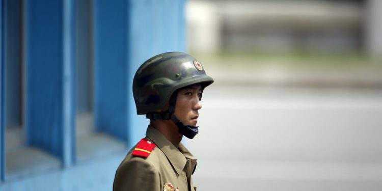 Στην φωτογραφία του Ρόιτερς, Νοτιο-κορεάτης στρατιώτης στα σύνορα