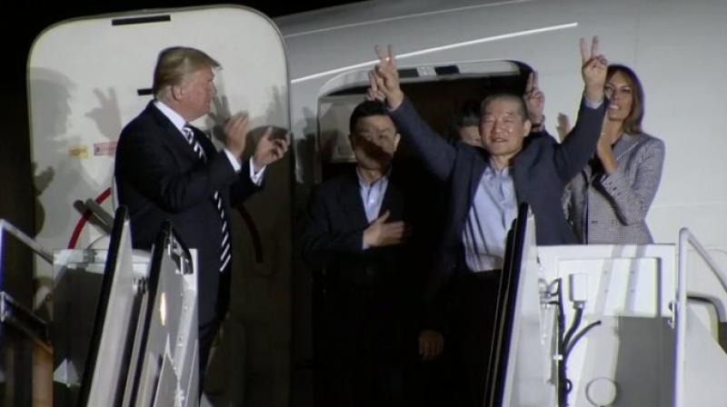 Ο Αμερικανός Πρόεδρος Ντόναλντ Τραμπ υποδέχθηκε του τρεις Αμερικανούς, που απελευθερώθηκαν από την Βόρειο Κορέα, στην αμερικανική στρατιωτική βάση Άντριους.