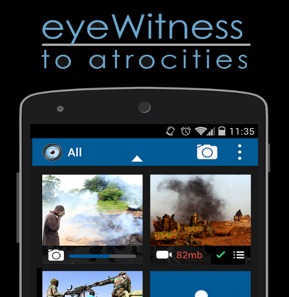 Το app «Eyewitness to Atrocities» («Μάρτυρας φρικαλεοτήτων») καταγράφει το σημείο που βρίσκεται ο χρήστης, την ημερομηνία και ώρα, και τα τριγύρω δίκτυα Wi-Fi για να επιβεβαιωθεί ότι τα βίντεο δεν έχουν παραποιηθεί, πριν σταλούν σε μια βάση δεδομένων που ελέγχεται από μια ομάδα νομικών εμπειρογνωμώνων. «Αυτό θα μπορούσε να αλλάξει το τοπίο εντελώς στη μάχη για τα ανθρώπινα δικαιώματα και τη διεθνή δικαιοσύνη …και να δώσει λύση στις δυσκολίες απόδειξης που σχετίζονται με τα στοιχεία από κινητά τηλέφωνα», δήλωσε ο διευθυντής της ΔΕΔ, Μάρκ Έλλις στο Ρόιτερς τηλεφωνικά.