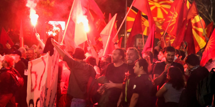 Επεισόδια ξέσπασαν χθες βράδυ στη Βόρεια Μακεδονία μπροστά στη Βουλή στα Σκόπια μεταξύ διαδηλωτών, που διαμαρτύρονται εναντίον της πρότασης της ΕΕ για να συναφθεί συμφωνία της Βόρειας Μακεδονίας με την Βουλγαρία, και αστυνομικών. Μερικές χιλιάδες διαδηλωτές συγκεντρώθηκαν για τέταρτο συνεχόμενο βράδυ αρχικά μπροστά στο κτήριο της κυβέρνησης στα Σκόπια και ακολούθως κινήθηκαν προς το υπουργείο Εξωτερικών, όπου πέταξαν αντικείμενα, προκαλώντας φθορές στην κεντρική είσοδο του κτηρίου.