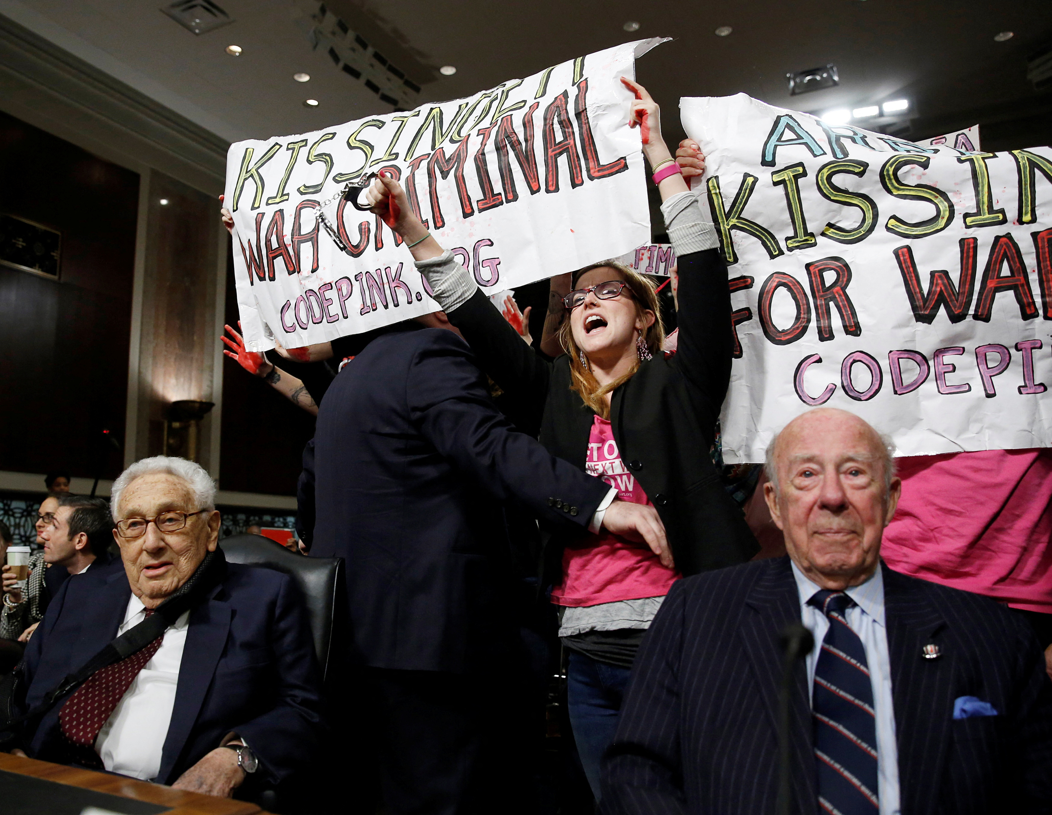 Έντονες επικρίσεις κατά της πολιτικής του Κίσινγκερ έχει εκφράσει μεταξύ άλλων ο Αμερικανός δημοσιογράφος Κρίστοφερ Χίτσενς στο βιβλίο του «Η Δίκη του Χένρυ Κίσσινγκερ, όπου διατείνεται ότι θα έπρεπε να δικαστεί για «εγκλήματα πολέμου, εγκλήματα κατά της ανθρωπότητας» και άλλα. Ο συγγραφέας δίνει στοιχεία για την εγκληματική, κατά τον ίδιο, ανάμειξή του στα πολεμικά και δικτατορικά δρώμενα στην Ινδονησία, το Μπαγκλαντές, τη Χιλή, την Κύπρο και το Ανατολικό Τιμόρ.