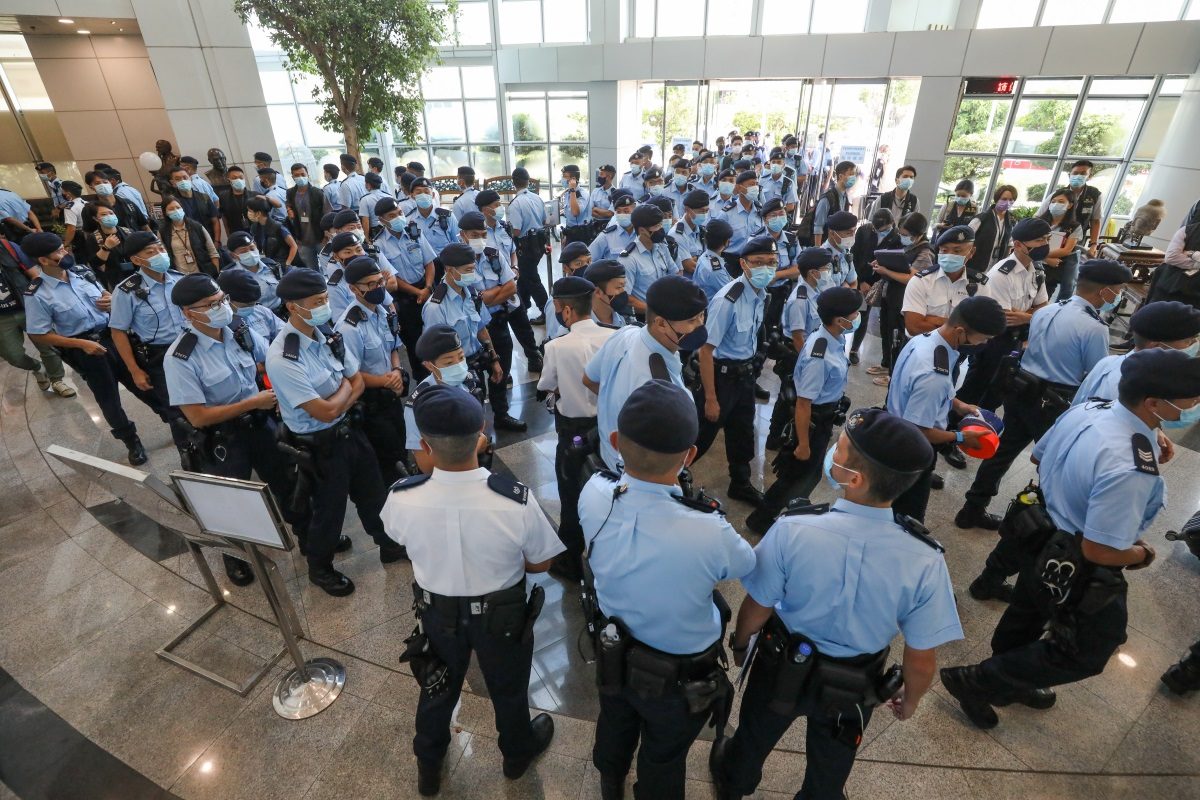 Τα πέντε μέλη της συντακτικής ομάδας συνελήφθησαν για «αθέμιτη σύμπραξη με ξένη χώρα ή ακραία στοιχεία που έχουν σκοπό να θέσουν σε κίνδυνο την εθνική ασφάλεια», ανέφερε η αστυνομία του Χονγκ Κονγκ σε δελτίο Τύπου που έδωσε στη δημοσιότητα.