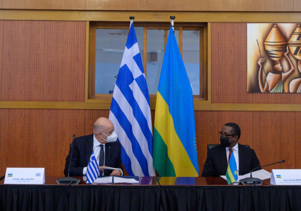 Την αποφασιστικότητα της Ελλάδας να ενισχύσει τις σχέσεις της με τις αφρικανικές χώρες, διαμήνυσε ο υπουργός Εξωτερικών Νίκος Δένδιας, σε δηλώσεις του μετά τη συνάντηση με τον ομόλογό του της Ρουάντα Βίνσεντ Μπιρούτα (Vincent Biruta).