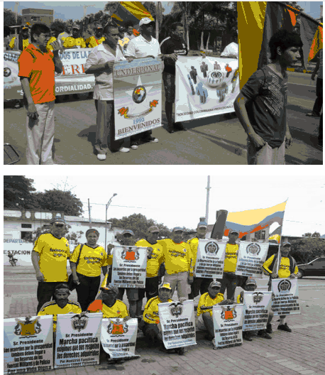 «Μια διαδήλωση που έρχεται από μακριά μα είναι τόσο κοντά μας, τόσο οικία. Τριάντα μία (31) ημέρες θα διαρκέσει η μεγάλη πορεία των Κολομβιανών συνταξιούχων Στρατιωτικών και Αστυνομικών και θα διανύσουν μια απόσταση πάνω από 1286 χιλιομέτρων. Ξεκίνησαν την 1η Ιουλίου 2013 από την Μπαρανκουίλα και θα τερματίσουν στην πρωτεύουσα της Κολομβίας, Μπογκοτά, όπου την 1η Αυγούστου στις 10:00 το πρωί θα υπάρξει μια μαζική συγκέντρωση στην Πλατεία Μπολιβάρ. Διαδηλώνουν και διαμαρτύρονται κατά της κυβέρνησης για τα δικαιώματά τους, για εργασία, την υγεία και καλύτερους μισθούς /συντάξεις και παροχές που τους οφείλει η κυβέρνηση.