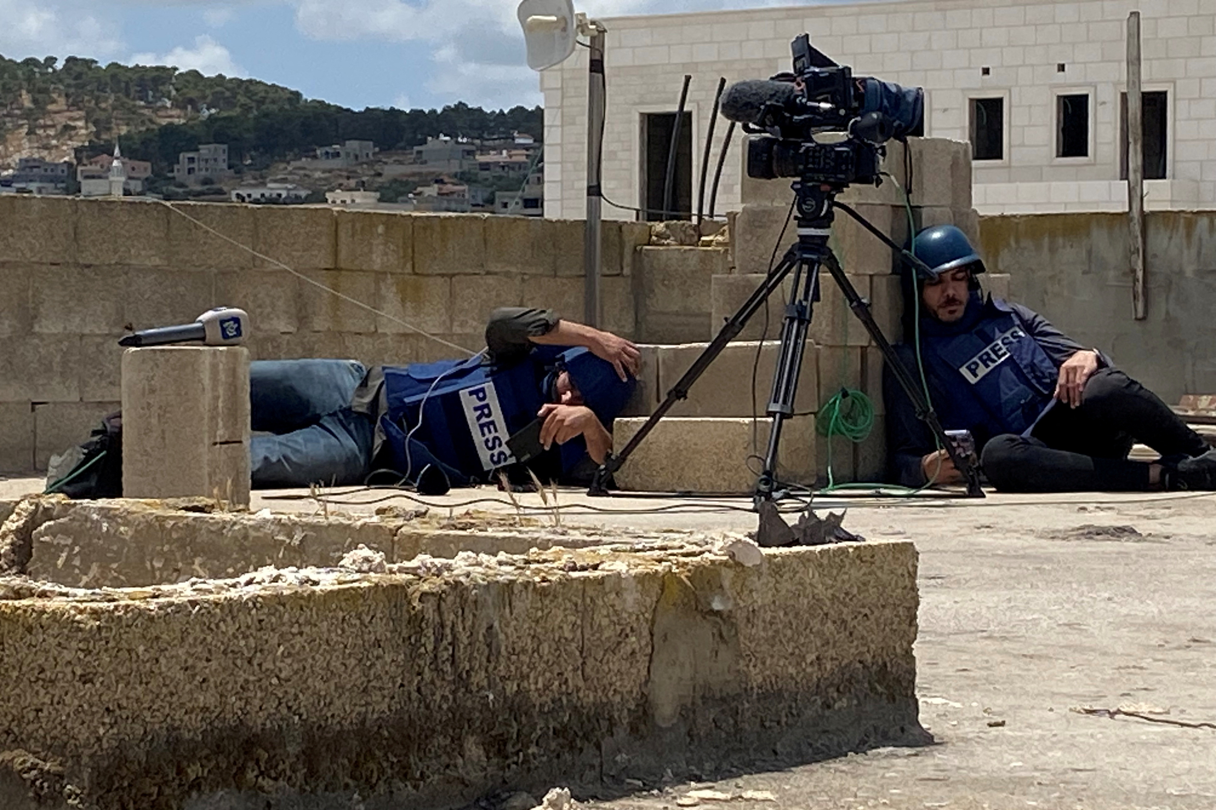 Σε βίντεο από ταράτσα κτηρίου στην Τζενίν, όπου είχαν βρει καταφύγιο δημοσιογράφοι, ένας εξ αυτών λέει πως δέχονταν πυρά από Ισραηλινούς ελεύθερους σκοπευτές.