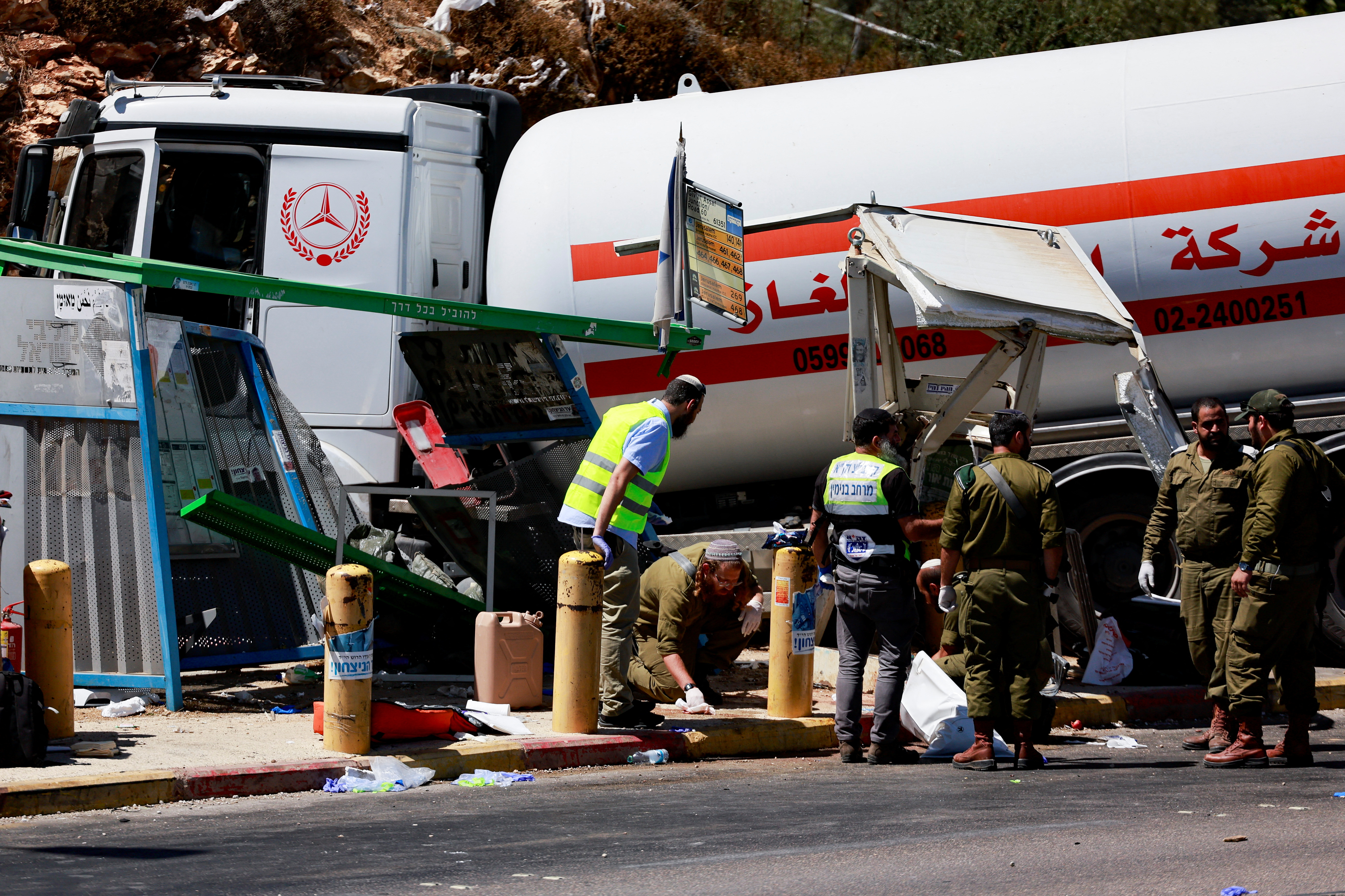 Ο Παλαιστίνιος οδηγός φορτηγού έριξε με φόρα το βυτιοφόρο του με καύσιμα σε στρατιωτικό φυλάκιο δίπλα σε στάση λεωφορείου στον κόμβο Givat Asaf.
