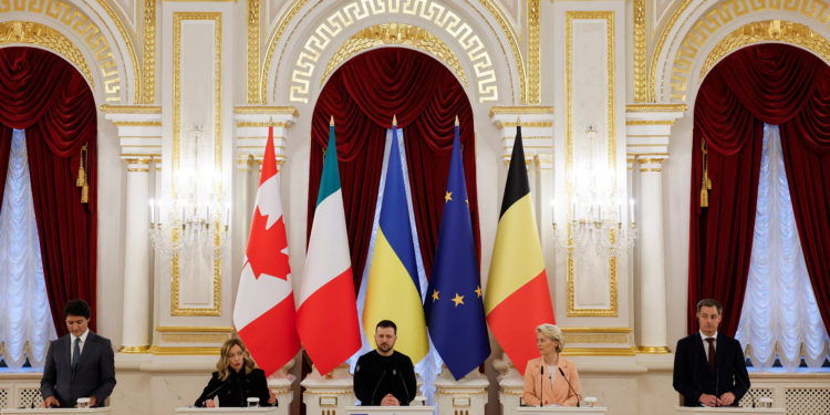Αυτό ανέφερε η πρόεδρος της Κομισιόν Ούρσουλα φον ντερ Λάιεν στην κοινή συνέντευξη Τύπου που παραχώρησε με τον πρόεδρο της Ουκρανίας Βολοντίμιρ Ζελένσκι, τον πρωθυπουργό του Βελγίου Αλεξάντερ Ντε Κρου, την πρωθυπουργό της Ιταλίας Τζόρτζια και Μελόνι και τον πρωθυπουργό του Καναδά Τζάστιν Τριντό.