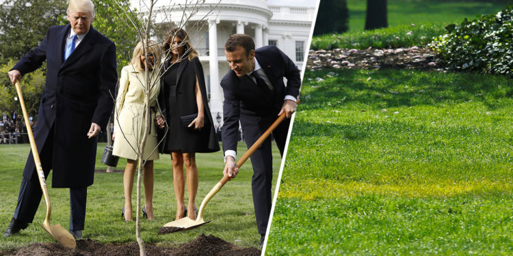 Ο Ντόναλντ Τράμπ «ξερίζωσε» το πεσκέσι του Εμμανουέλ Μακρόν. Η εφημερίδα Bild υποστηρίζει με βάση τα φωτογραφικά στιγμιότυπα που δημοσιεύει η βελανιδιά που φύτεψαν οι δυο πρόεδροι έμεινε κάτι λιγότερο από ένα 24ωρο στον κήπο του Λευκού Οίκου.