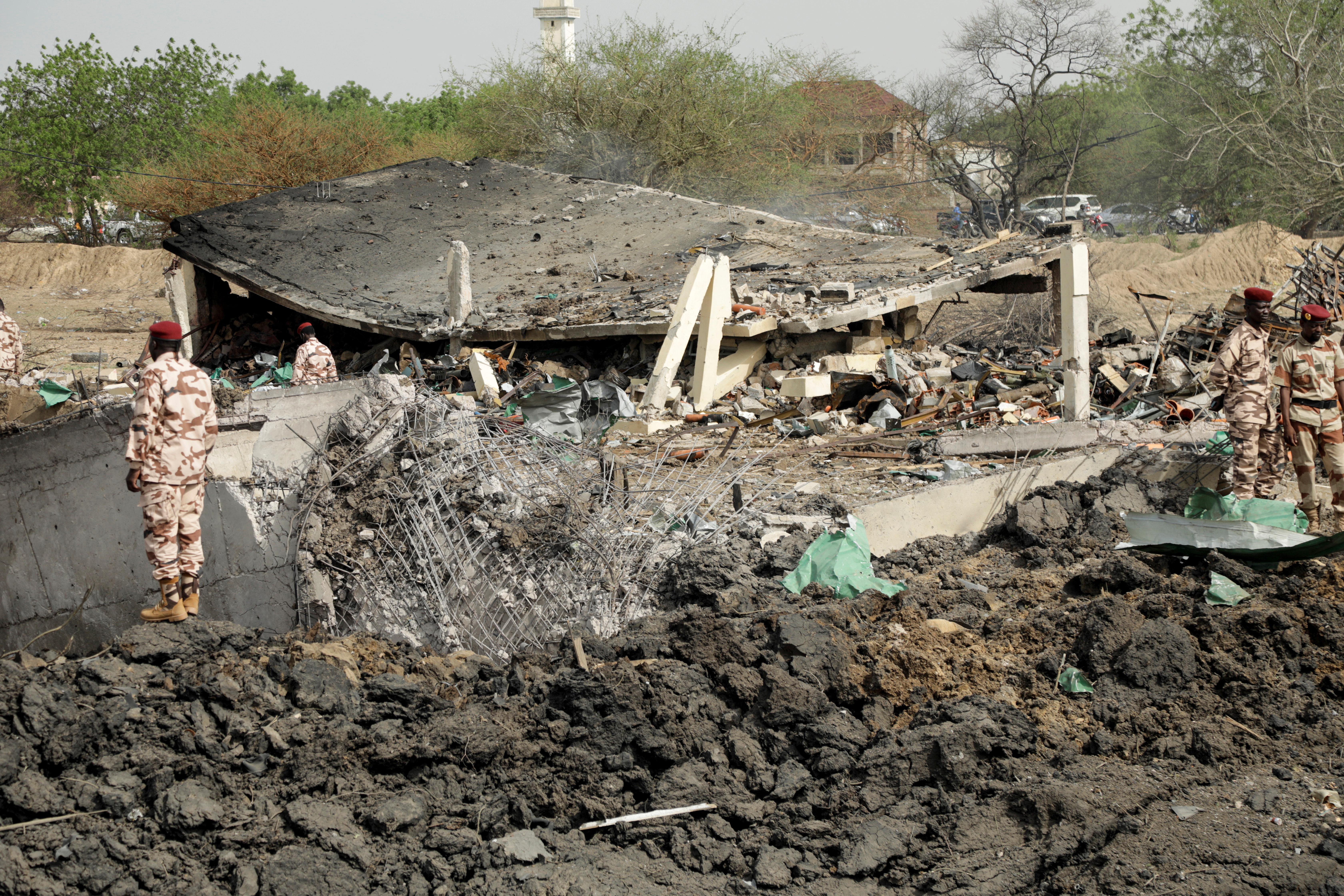 Το πρωί ο πρόεδρος του Τσαντ Μαχαμάτ Ιντρίς Ντεμπί επισκέφθηκε την περιοχή που θύμιζε βομβαρδισμένο τοπίο, με κατεστραμμένα οχήματα και στραπατσαρισμένες λαμαρίνες που είχαν διασκορπιστεί γύρω από έναν τεράστιο κρατήρα.