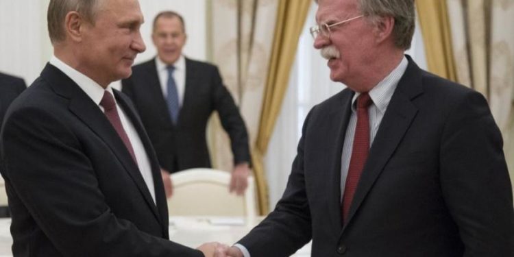 Ο σύμβουλος του Λευκού Οίκου συζήτησε για την τύχη της INF με τον Ρώσο υπουργό Εξωτερικών Σεργκέι Λαβρόφ χθες Δευτέρα και πέρασε «σχεδόν πέντε ώρες» με τον Νικολάι Πατρούσεφ, γενικό γραμματέα του Συμβουλίου Εθνικής Ασφάλειας της Ρωσικής Ομοσπονδίας.