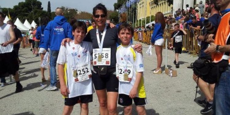 Στη φωτό η Αλεξάνδρα με τα παιδιά της στον μινι Μαραθώνιο της Αθήνας.