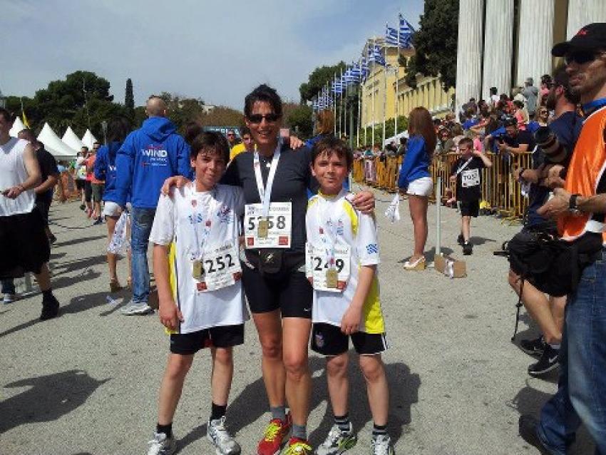 Στη φωτό η Αλεξάνδρα με τα παιδιά της στον μινι Μαραθώνιο της Αθήνας.