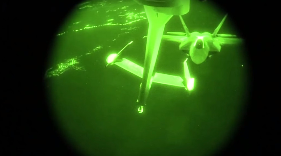 Στο βίντεο το μαχητικό,ανεφοδιάζεται από την 908η Μοίρα Εναέριου Ανεφοδιασμού κατά τη διάρκεια νυχτερινής αποστολής ενάντια στο Ισλαμικό Κράτος τον Ιούλιο, στα πλαίσια της επιχείρησης Operation Inherent Resolve.