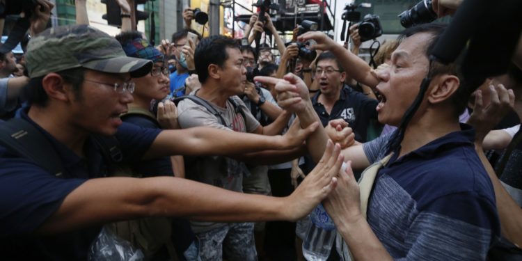 Η ένταση συνεχίζεται στο Χονγκ Κονγκ, όπου βίαιες συμπλοκές ξέσπασαν σε μια από τις πιο γνωστές εμπορικές συνοικίες σήμερα, καθώς εκατοντάδες υποστηρικτές της Κίνας και αγανακτισμένοι πολίτες επιτέθηκαν σε διαδηλωτές, έσκισαν πανό που ανήκουν σε διαδηλωτές, έριξαν σκηνές και ανάγκασαν πολλούς εξ αυτών να υποχωρήσουν.