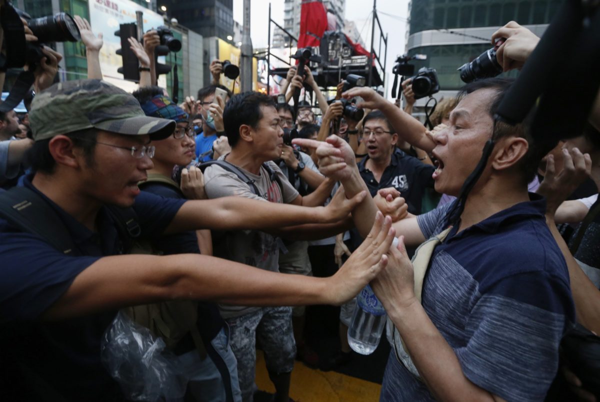 Η ένταση συνεχίζεται στο Χονγκ Κονγκ, όπου βίαιες συμπλοκές ξέσπασαν σε μια από τις πιο γνωστές εμπορικές συνοικίες σήμερα, καθώς εκατοντάδες υποστηρικτές της Κίνας και αγανακτισμένοι πολίτες επιτέθηκαν σε διαδηλωτές, έσκισαν πανό που ανήκουν σε διαδηλωτές, έριξαν σκηνές και ανάγκασαν πολλούς εξ αυτών να υποχωρήσουν.