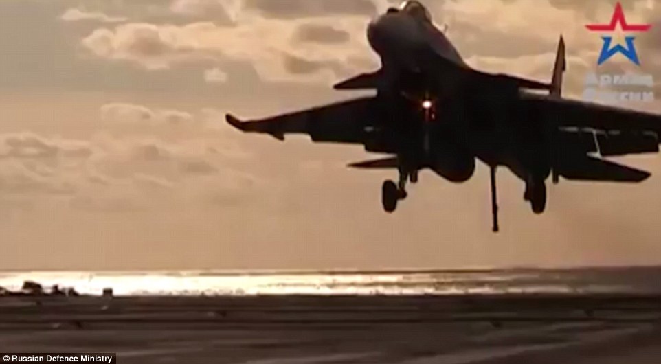 Το ρωσικό υπουργείο Άμυνας έχει δώσει στη δημοσιότητα πλάνα μαχητικών αεροσκαφών κατα την διάρκεια εκπαίδευσης στο αεροπλανοφόρο.