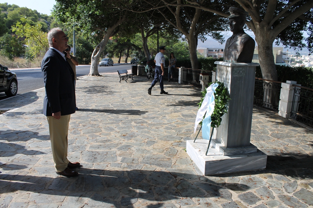 Τέλος, κατέθεσε στεφάνι στην προτομή του πεσόντα αεροπόρου Σμηναγού Κώστα Ηλιάκη.