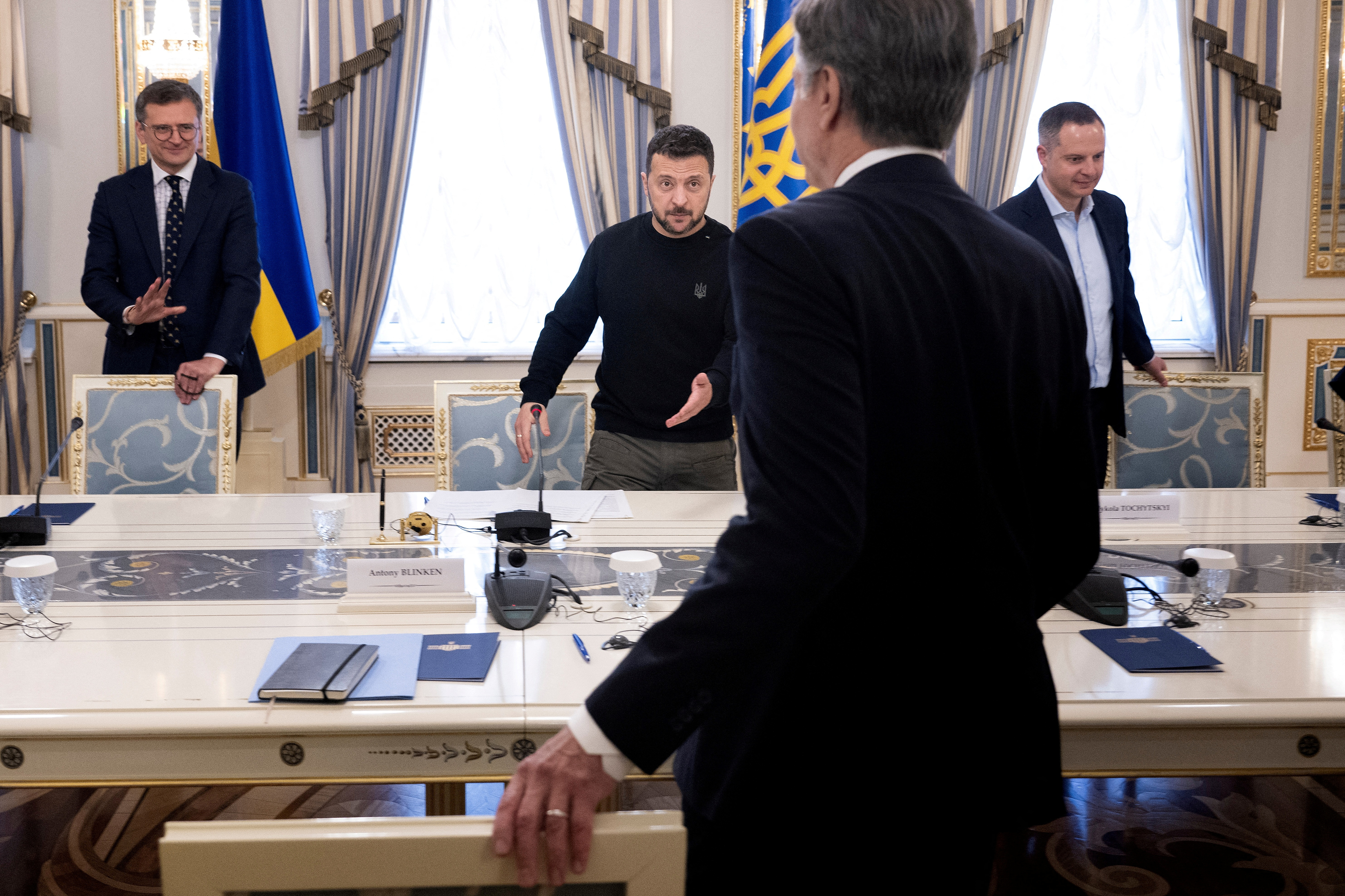 Ο Ουκρανός πρόεδρος είπε επίσης ότι θα συζητήσει με τον Μπλίνκεν τις εγγυήσεις ασφαλείας με τις ΗΠΑ, και θα του ζητήσει να συγκεντρώσει υποστήριξη από περισσότερες χώρες στην προσεχή ειρηνευτική σύνοδο που θα πραγματοποιηθεί στην Ελβετία τον Ιούνιο.