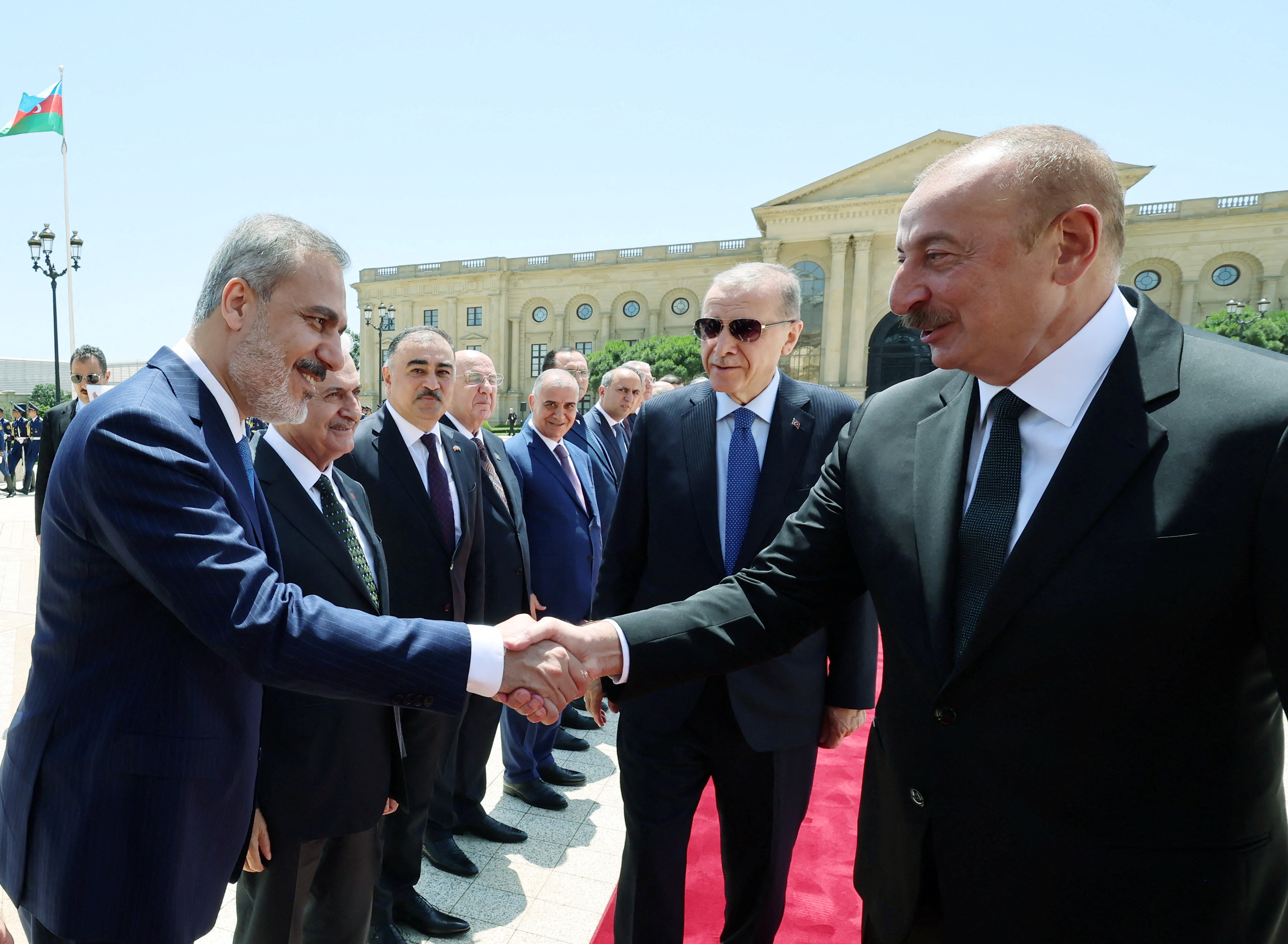 Η Τουρκία και το Αζερμπαϊτζάν είναι «δύο κράτη, ένα έθνος», δήλωσε ο Ερντογάν, επαναλαμβάνοντας ένα σύνθημα που απεικονίζει την ιστορική εγγύτητα μεταξύ των δυο αυτών χωρών.