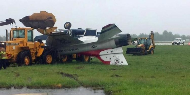 Σύμφωνα με επίσημη ανακοίνωση των Thunderbirds στο facebook, το αεροσκάφος εκτελούσε μεμονωμένως στις 23 Ιουνίου πτήση εξοικείωσης όταν στις 12:20 μμ (τοπική ώρα) συνέβη το ατύχημα κατά την προσγείωση. Αν και δεν έγιναν επισήμως γνωστά τα αίτια του ατυχήματος, ο καιρός φαίνεται ότι έπαιξε ρόλο καθώς στην περιοχή οι καιρικές συνθήκες χαρακτηρίζοντο από καταιγίδες, με ισχυρή βροχόπτωση, κεραυνούς και ριπές ανέμου έως 23 μίλια/ώρα.