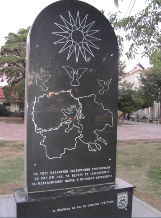Ο Δήμος της Γευγελής τοποθέτησε μνημείο στο κέντρο της πόλης για τους πολιτικούς κρατούμενους και διωχθέντες από την ΠΓΔΜ την περίοδο από το 1945 έως το 1990 (περίοδος ενιαίας Γιουγκοσλαβίας).