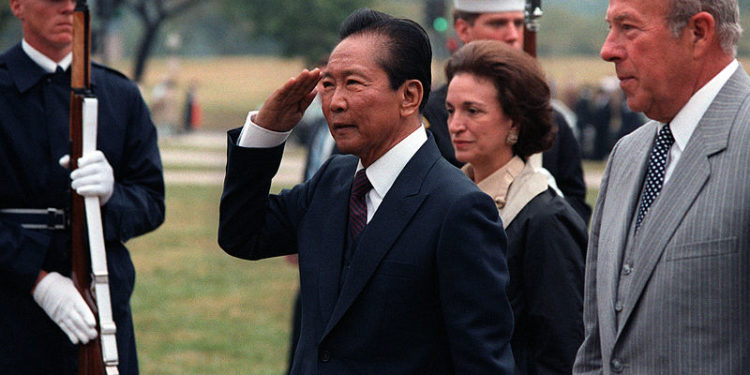 Ο πρώην δικτάτορας των Φιλιππίνων Φερντινάντο Μάρκος (στην φωτογραφία με τον Υπουργό Εξωτερικών των ΗΠΑ Τζώρτζ Σούλτζ, 1982) ενταφιάστηκε σήμερα με τιμές ήρωα στη Μανίλα, σχεδόν 30 χρόνια μετά τον θάνατό του στη Χαβάη, εν μέσω διαδηλώσεων από ομάδες προάσπισης των ανθρωπίνων δικαιωμάτων και πολιτικών της αντιπολίτευσης.
