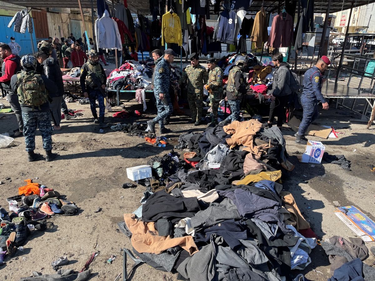 Στο σημείο της επίθεσης, ένα πολυσύχναστο σταυροδρόμι της Βαγδάτης, είναι ορατές λίμνες αίματος και κουρέλια από ρούχα που σκίστηκαν από την έκρηξη.