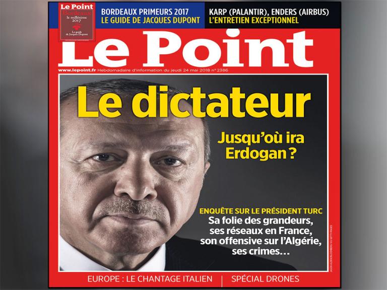 Με μια φωτογραφία του Ρετζέπ Ταγίπ Ερντογάν να πιάνει σχεδόν όλη τη σελίδα και τίτλο «Ο δικτάτορας» κυκλοφόρησε χθες (24.05.2018) το περιοδικό Le Point, που αναρωτιέται «μέχρι που θα φτάσει ο Ερντογάν».