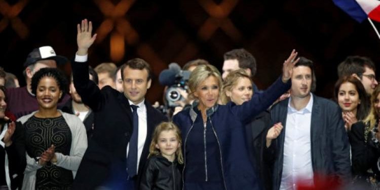 Μετά την πρώτη του ομιλία ως νέος Πρόεδρος της Γαλλίας (σ.σ. δείτε στη συνέχεια του κειμένου όσα είπαν στις πρώτες τους ομιλίες τόσο ο Μακρόν, όσο και η Λε Πεν), ο Εμανουέλ Μακρόν σε μια συμβολική κίνηση ο νεος Πρόεδρος της Γαλλίας Εμανουέλ Μακρόν έφτασε στο Λούβρο και ανέβηκε χωρίς την σύζυγό του Μπριζίτ στο βάθρο για να μιλήσει στους συγκεντρωμένους οπαδούς, από 20.000 έως 40.000 σύμφωνα με το περιβάλλον του