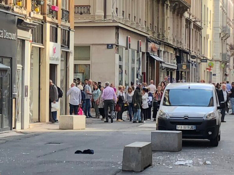 Πλάνα ενός υπόπτου, που μεταδόθηκαν από δημοτικές κάμερες βιντεοεπιτήρησης, δόθηκαν γρήγορα στη δημοσιότητα από τις αρχές και μη ταυτοποιημένο DNA βρέθηκε επίσης στη σακούλα που εξερράγη το απόγευμα της Παρασκευής μπροστά από έναν φούρνο σε εμπορικό δρόμο στο κέντρο της Λιόν.