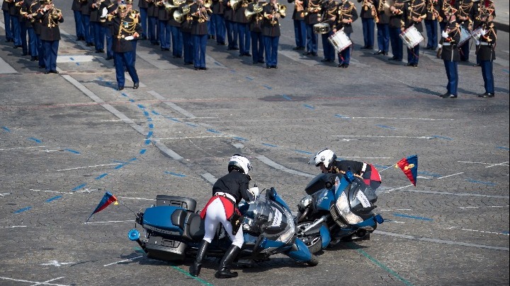 Οι αστυνομικοί πάντως σηκώθηκαν πολύ γρήγορα, υπό το βλέμμα του προέδρου Μακρόν, ο οποίος τους χαμογέλασε με κατανόηση.Στους φετινούς εορτασμούς επίτιμοι προσκεκλημένοι ήταν ο πρωθυπουργός της Σιγκαπούρης Χσιέν Λόονγκ και ο υπουργός Εξωτερικών της Ιαπωνίας Τάρο Κόνο. Φέτος συμπληρώνονται 160 χρόνια από την έναρξη των διπλωματικών σχέσεων μεταξύ της Γαλλίας και της Ιαπωνίας ενώ, εδώ και 20 χρόνια, πιλότοι της Σιγκαπούρης εκπαιδεύονται στη γαλλική βάση του Καζό.