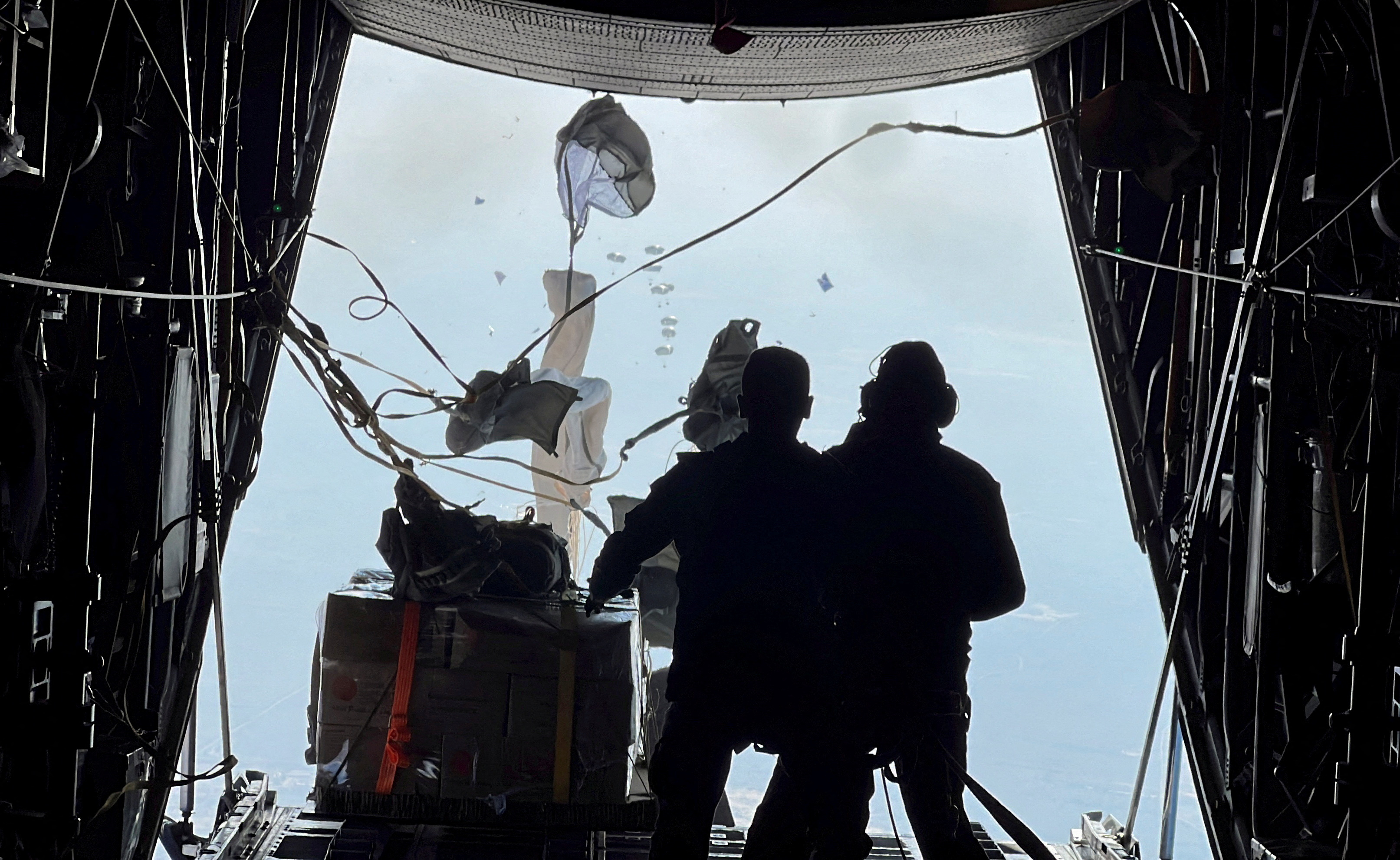 Σε μια συντονισμένη επιχείρηση από την Γαλλία, τις ΗΠΑ, την Ιορδανία και τα Ηνωμένα Αραβικά Εμιράτα (ΗΑΕ), παραδόθηκε από αέρος ανθρωπιστική βοήθεια στη Γάζα.
